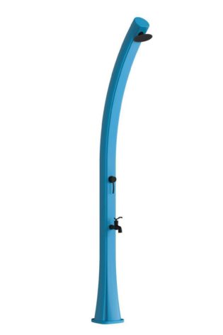 DOCCIASOLARE-RIO-BLU-BLACKMATT Ducha Solar Exterior Azul Blackmatt Curvada Starmatrix Rio 22l Con Lavapies Polietileno Blanco 226 Cm Ideal Para Jardín Piscina Camping Terraza Ducha Solar Piscina y Ducha De Jardín Para Exterior
