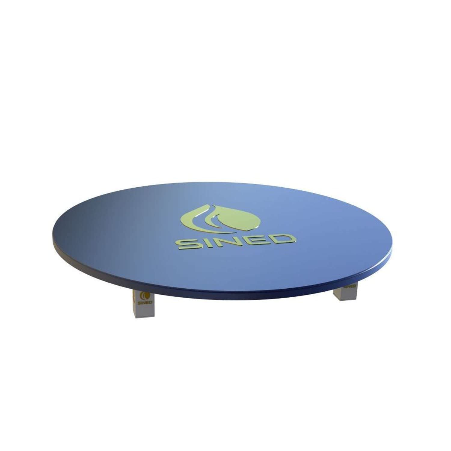 SINED ESPOSITORE-DOCCE-ROTONDO-BLU Expositor De Ducha Azul Sined. Soporte De Ducha Redondo Azul De Acero De 100 Cm De Diámetro. Equipado Con Pies Para Asegurar La Estabilidad. Ideal Para 3 Grandes Duchas o 3 Fuentes De Agua Potable.