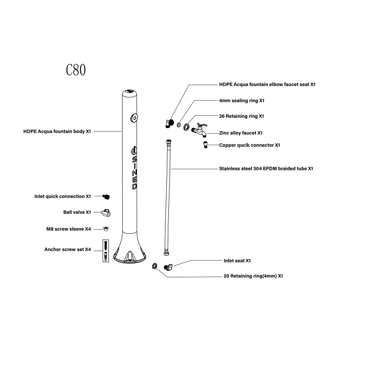 – Fuente fabricada en HDPE (polietileno de alta resistencia) resistente a los rayos UV, a la cal y a la salinidad.