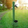 Bien hecho, diseño exclusivo, económico, este es el KIT compuesto por fuente verde y cubo con capacidad de 5 litros y rejilla de hierro fundido para recoger las hojas. Grifo de aleación metálica negra y disposición para acoples rápidos de manguera de jardín.